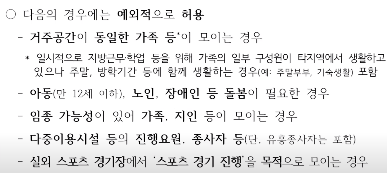 그리고 가장 중요한 사적 모임과 가족모임의 예외적 허용은 다음과 같습니다.