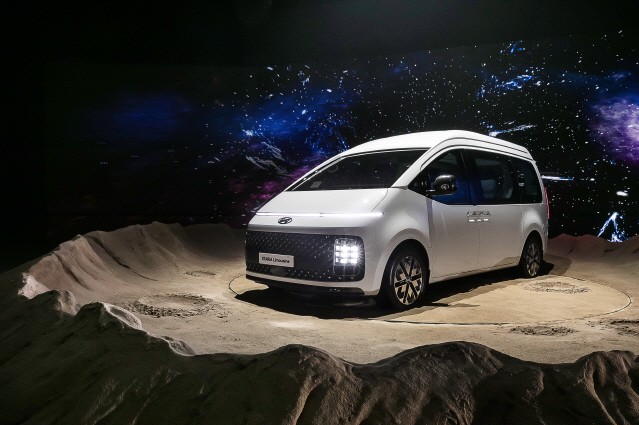전면부에서 보여주는 가로형 데이라이트와 아래 위치한 헤드램프 큼직해 보이는 그릴까지 아이오닉 콘셉트카에서도 그랫들이 스타리아의 구성과 디자인을 그대로 보여줍니다